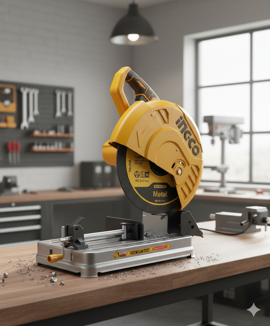 تقطيع دقيق و نظيف: مع قرص 355 ملم، كيعطيك تقطيع دقيق و نظيف ف جميع أنواع المعادن، سواء كانت قضبان، أنابيب، أو صفائح.