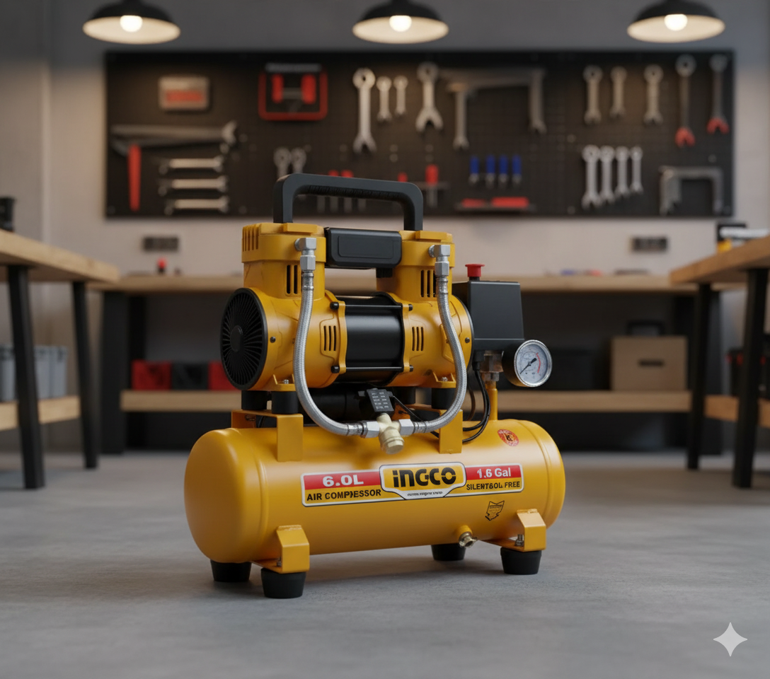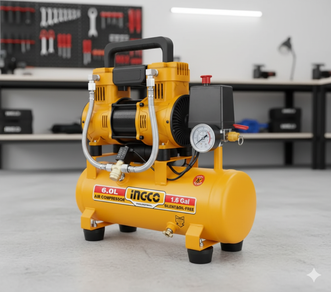 جودة INGCO الموثوقة: كومبريسور مصنوع من مواد عالية الجودة باش يصبر معاك ويدوم لمدة طويلة، كيفما عوداتنا ماركة INGCO.